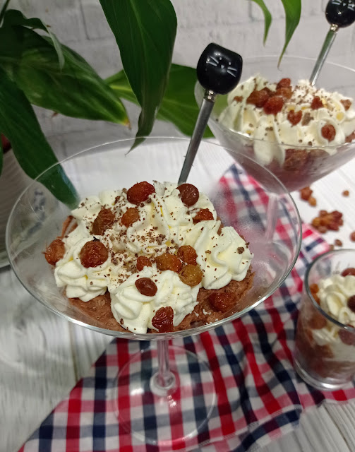 Ten deser miał swoje pięć minut w czasach PRL-u . To zaledwie dwa główne składniki śmietanka i kakao, wzbogacony rodzynkami. Bardzo prosty deser do przygotowania w kilka chwil. Co najważniejsze Pyszota !