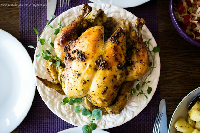 Składniki:– 1 cały sprawiony kurczak– 3 ząbki czosnku– 1/2 łyżeczki chili– 1…