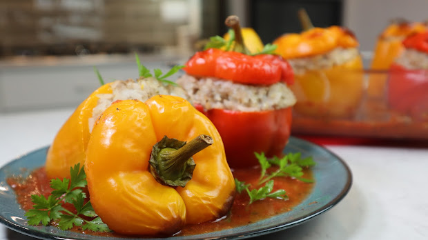 Papryka jest mięciutka, a nadzienie doprawione i sycące; do tego sos przeszedł smakiem i aromatem papryki. Roboty w sumie niewiele, godzina w piekarniku, a można przygotować pełnowartościowy i pełen smaku posiłek dla całej rodziny.