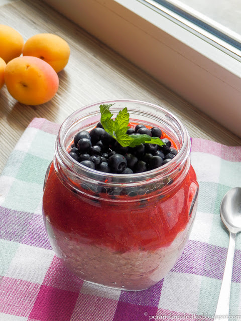 Tak tak, ja truskawki jeszcze mam 🙂Morelowo-poziomkowy krem z pełnoziarnistej kaszy bulgur…