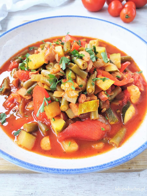 Leczo z fasolką szparagową, cukinią i kiełbasą