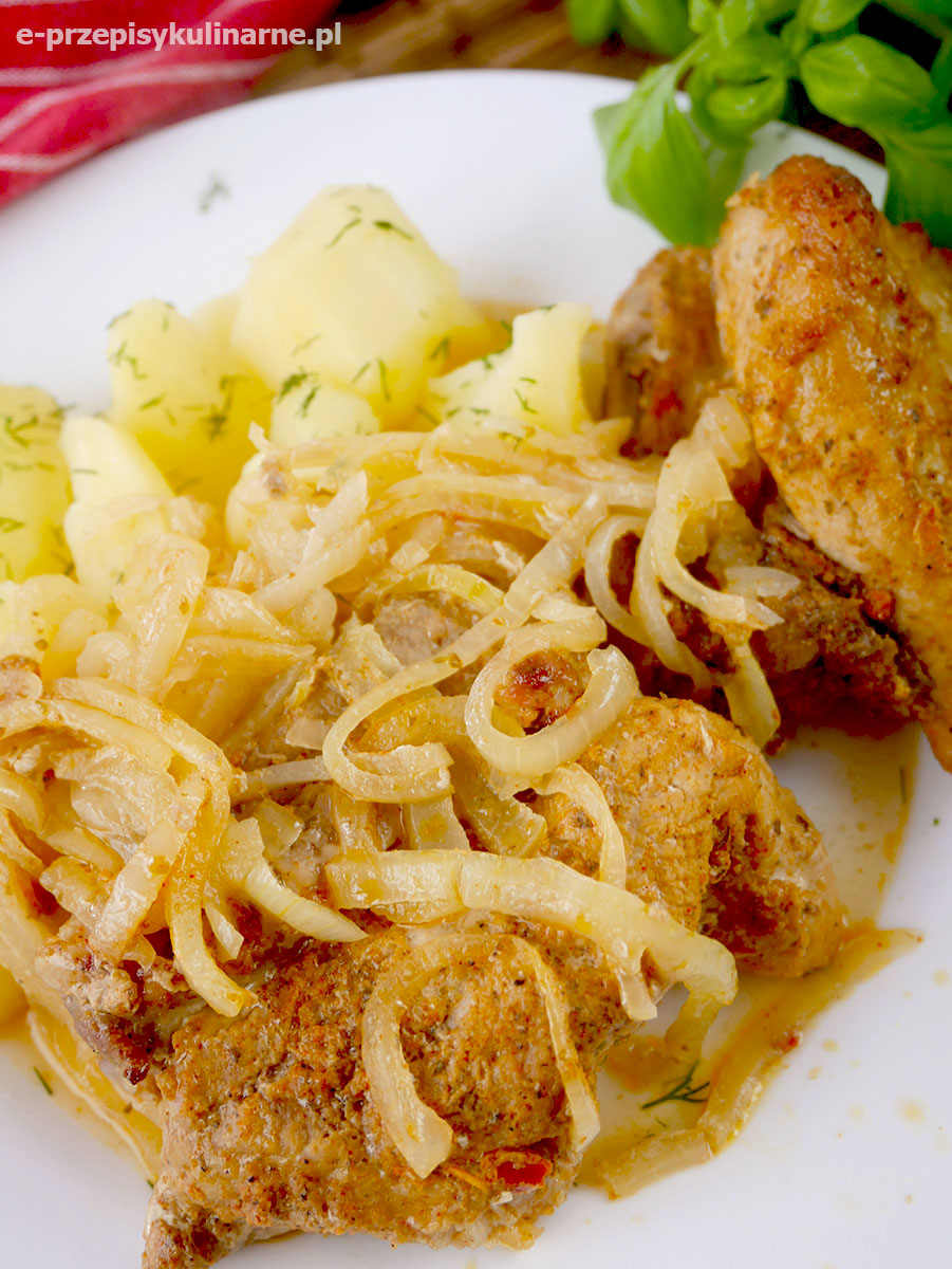 Pieczone żeberka z cebulą to bardzo prosty przepis na pyszne mięciutkie mięso wieprzowe, które można podać na sycący obiad dla całej rodziny. Są bardzo aromatyczne, mięso łatwo odchodzi od kości i jest bardzo soczyste. Jeśli lubicie nieco bardziej tłuste mięsa, to jest to przepis, który w pewnością przypadnie