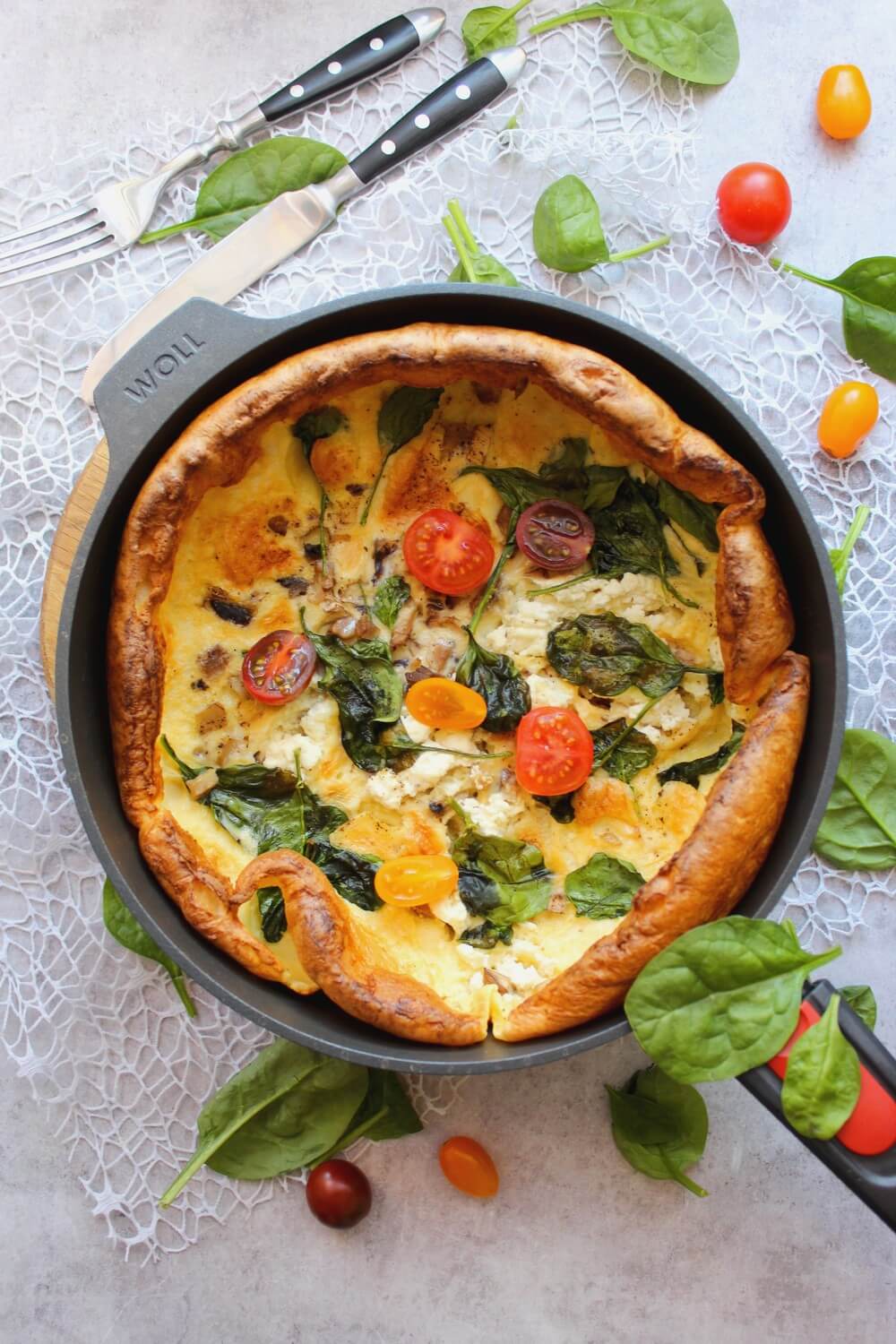 Lubicie naleśniki? Jadacie je na słodko czy wytrawnie? U nas dzieci uwielbiają wersję na słodko, a reszta rodziny (w tym ja) kocham naleśniki w każdej postaci. Dziś polecam Wam pyszny przepis na pieczony naleśnik z kozim serem, szpinakiem i pieczarkami. Idealny