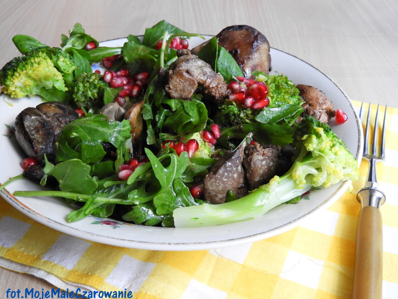 Sałatka z gęsią wątróbką, brokułem i granatem