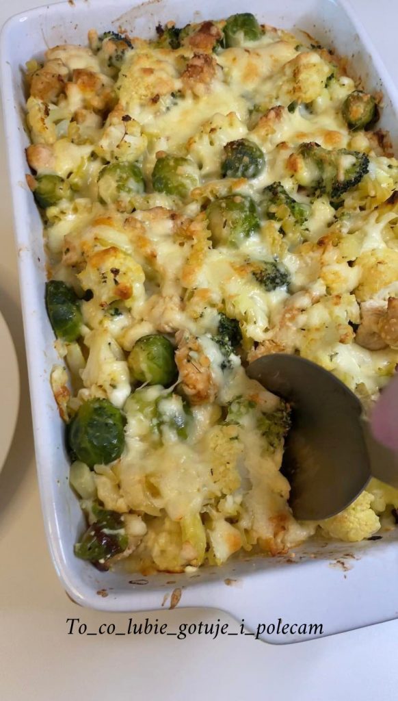Przepis na zapiekankę makaronową z mnóstwem warzyw i indykiem. Zapiekanka, w której możecie wykorzystać mnóstwo ulubionych warzyw. Moja zapiekanka jest z brokułem, kalafiorem, fasolką szparagową oraz brukselką. Do zapiekanki dodałam mięso z indyka, ale równie dobrze możecie zrobić w wersji wegetariańskiej.