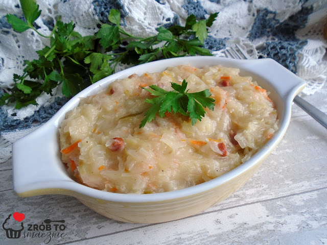 ZASMAŻANA KAPUSTA KISZONA Z BOCZKIEM I CEBULKĄ
