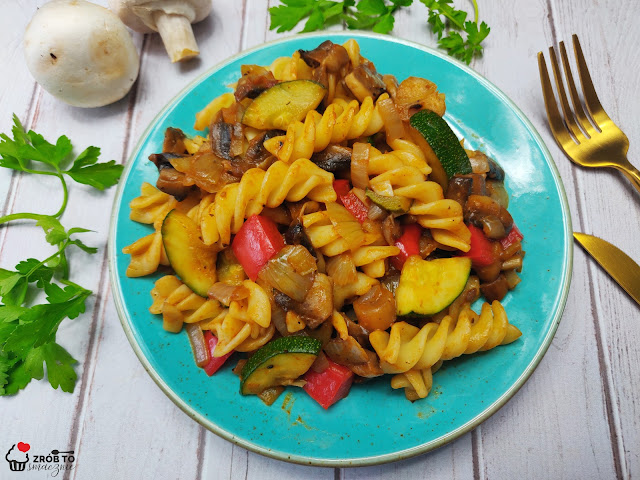 Makaron z warzywami czyli szybki, bezmięsny obiad, który przygotujecie dosłownie w kilka chwil. Smacznie i pożywnie. Danie to jest bez mięsa, więc doskonale pasuje na piątkowy obiad. Idealna propozycja dla osób zapracowanych kiedy to jest mało czasu na przygotowanie obiadu. Dla mnie takie danie to rewelacja, rodzince również smakowało 🙂