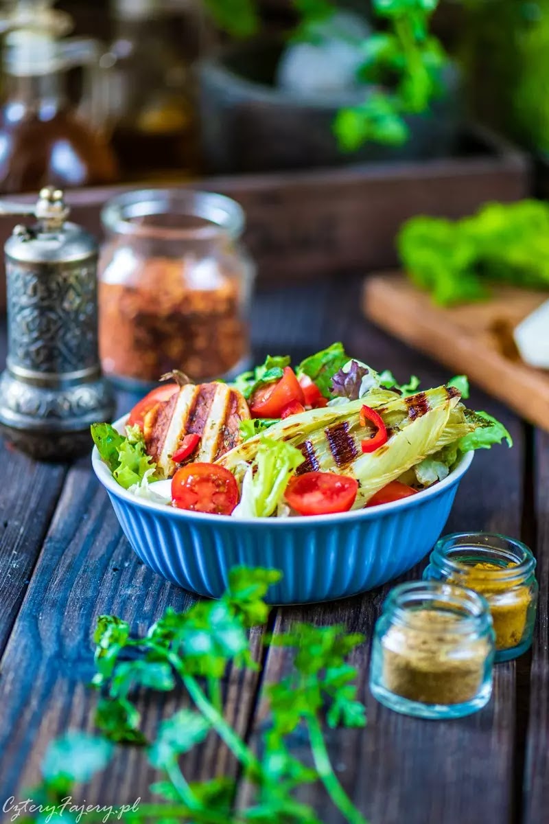 Sałatka z serem halloumi przepis na pyszną sałatkę do pracy i na każdą okazję. Sałatka z serem halloumi i rukolą jest szybka i prosta do przygotowania. Ogromną zaletą przepisu na sałatka z serem halloumi jest możliwość dodania do