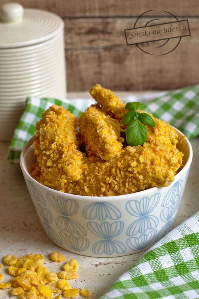 Pieczone kąski kurczaka w płatkach kukurydzianych