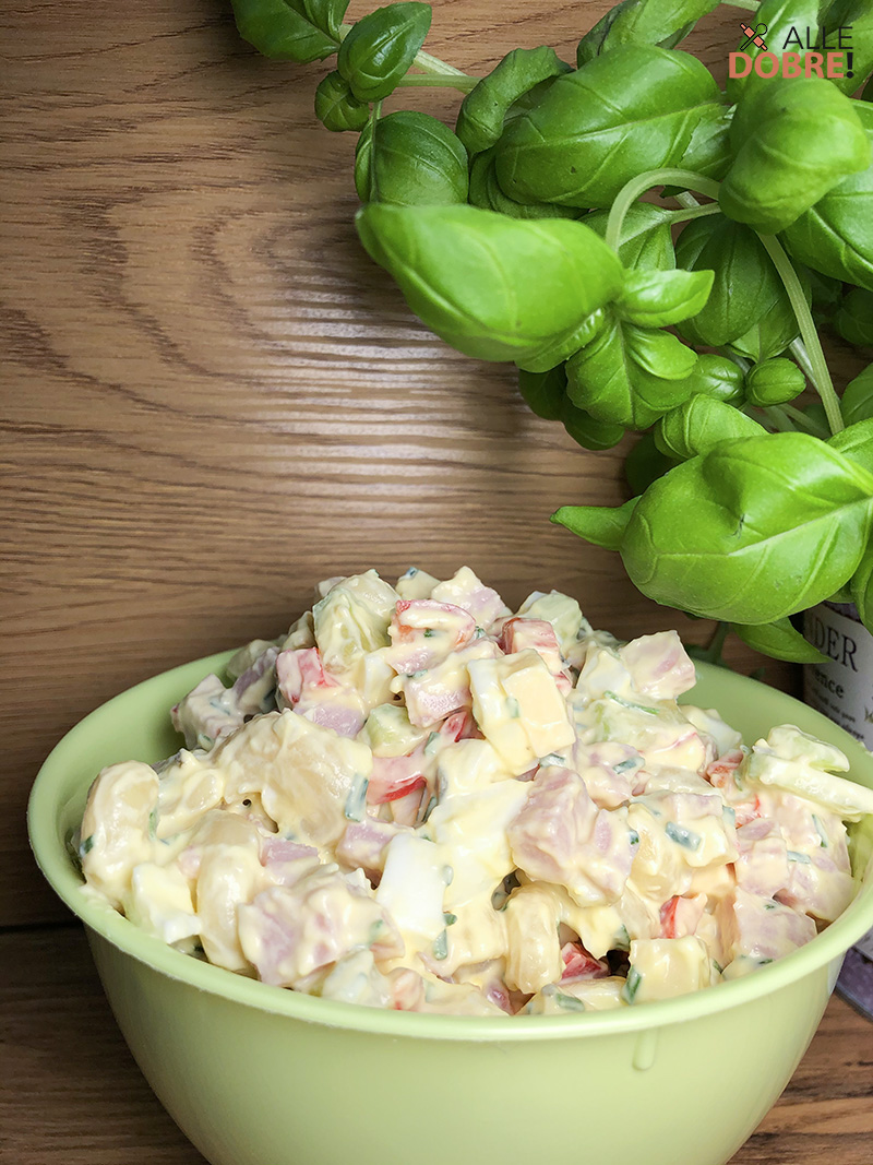 Sałatka nowatorska jest naprawdę przepyszna! Fajnie prezentuje się w szklanym naczyniu i bardzo szybko się ją robi.