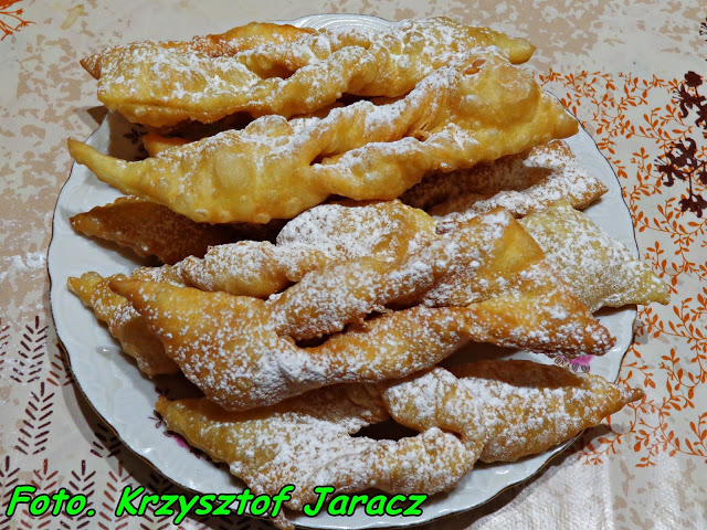 Faworki ( chrust ) na jogurcie .