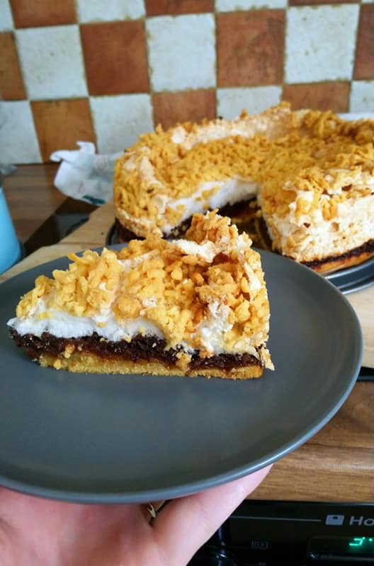 Przepis na wyśmienite ciasto pleśniak. Kruche ciasto, przełożone marmoladą z bezową pianką na górze i kruchym wierzchem.