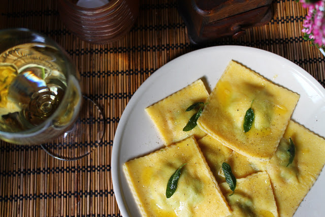 Ravioli z dynią, jarmużem i masłem szałwiowym