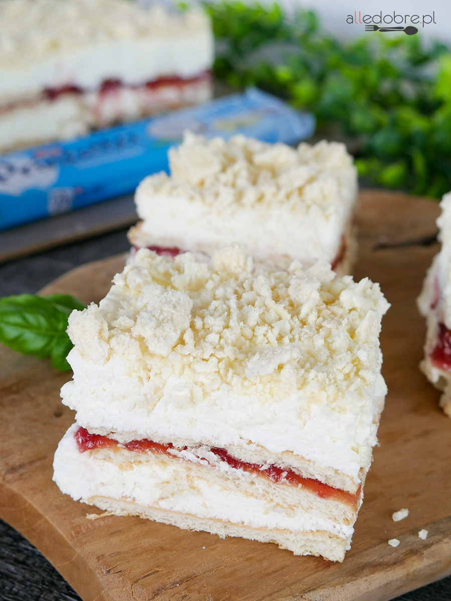 Ciasto malinowa princessa to kolejny smaczny deser, który nie wymaga pieczenia. Składa się z herbatników, słodkiego kremu na bazie śmietanki kremówki, serka mascarpone oraz białej czekolady. Słodki smak ciasta przełamuje dżem malinowy, który idealnie pasuje do tego deseru.