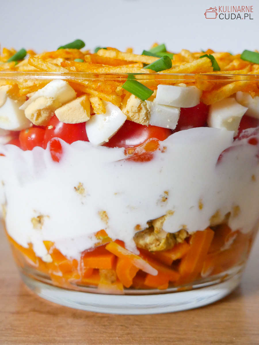 Ta oryginalna sałatka z chipsami nie tylko zjawiskowo wygląda, ale także wyśmienicie smakuje!