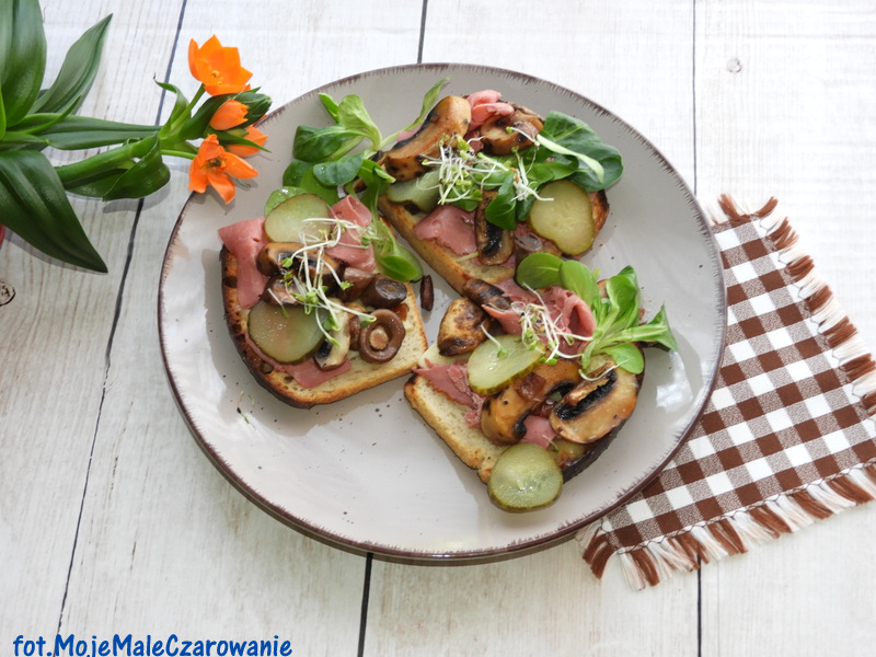 Śniadanko petarda dzisiaj.Połączenie karmelizowanych pieczarek i pastrami to połączenie idealne.Kanapki znikają szybciej…