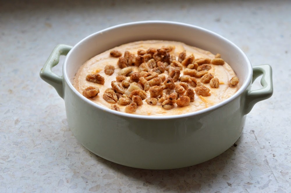 serniczek waniliowy z papają, ubitym białkiem i pszenicą w melasie żeby równie…