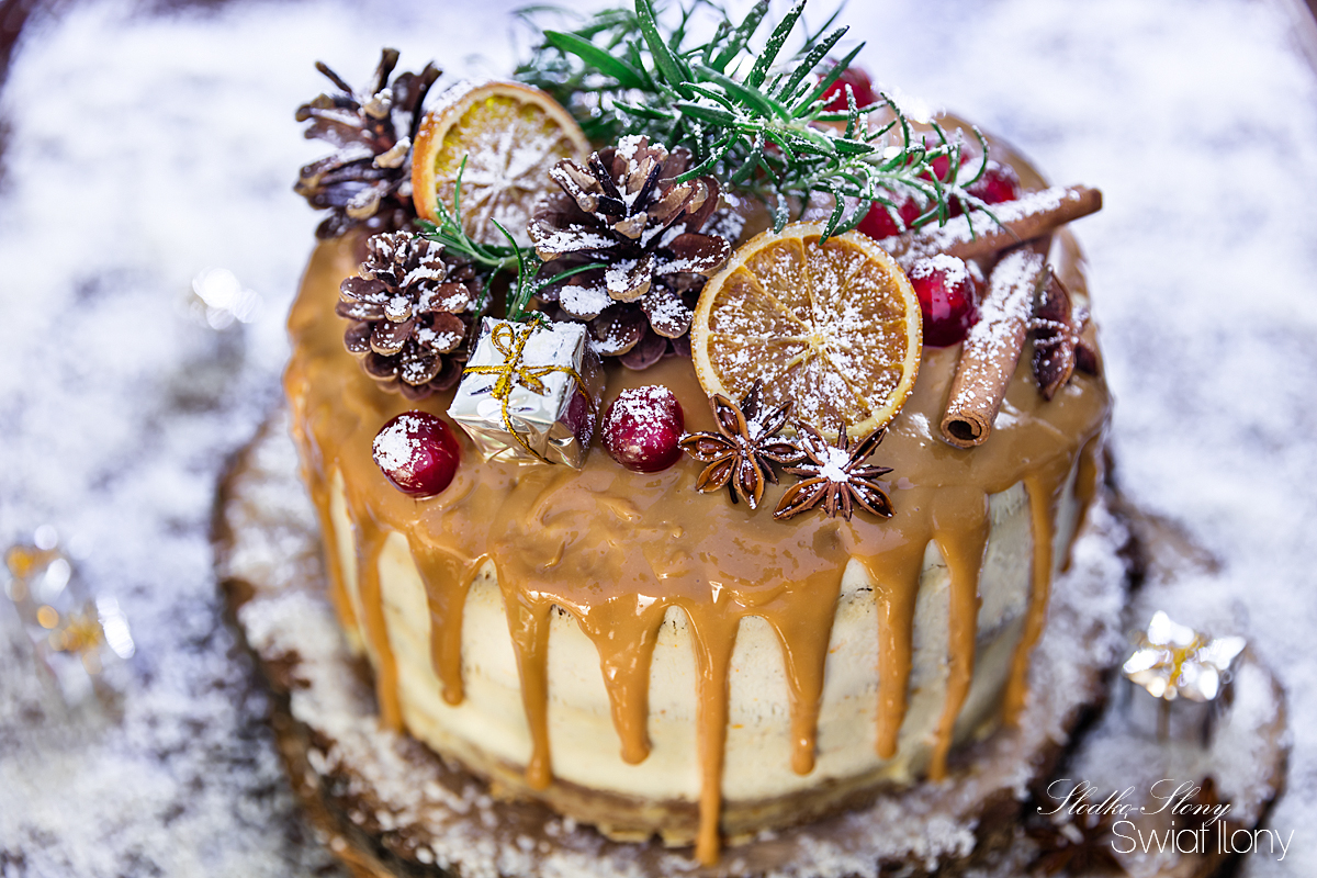 Pyszny, wilgotny, pachnący tort piernikowy przełożony delikatnym kremem pomarańczowym oraz oblany słodkim…