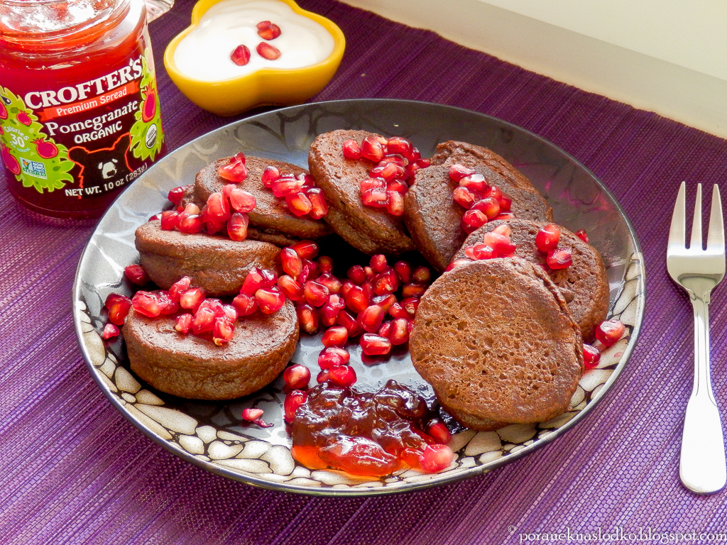 Czekoladowe placuszki z soczewicy na ekologicznym soku z żurawiny Symbio podane z…