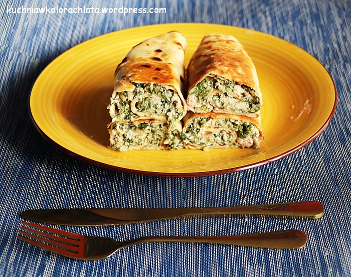 Naleśniki z kurczakiem, szpinakiem i serem żółtym