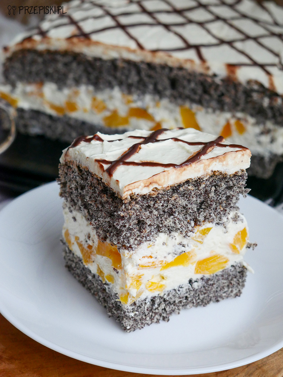 Makowa Panienka z brzoskwiniami to ciasto, które wbrew pozorom wcale nie jest