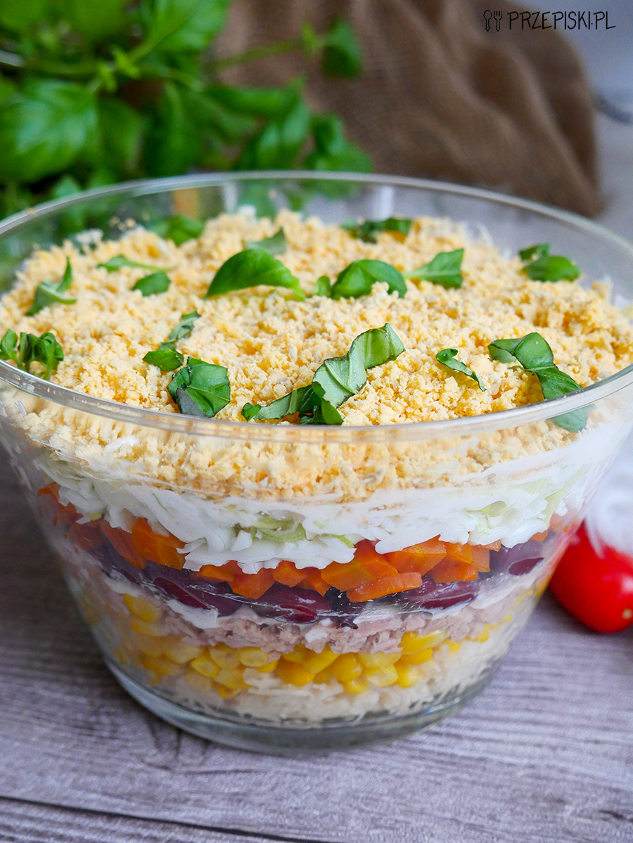 Sałatka ceserska to bardzo smaczna sałatka z tuńczykiem, marchewką oraz czerwoną fasolą. Połączenie tych kolorowych składników z całą resztą smakuje naprawdę rewelacyjnie. Sałatka bardzo fajnie prezentuje się na stole, ponieważ jest bardzo kolorowa. Zaleca się ją serwować w przezroczystej misce, by uwidocznić jej piękno.