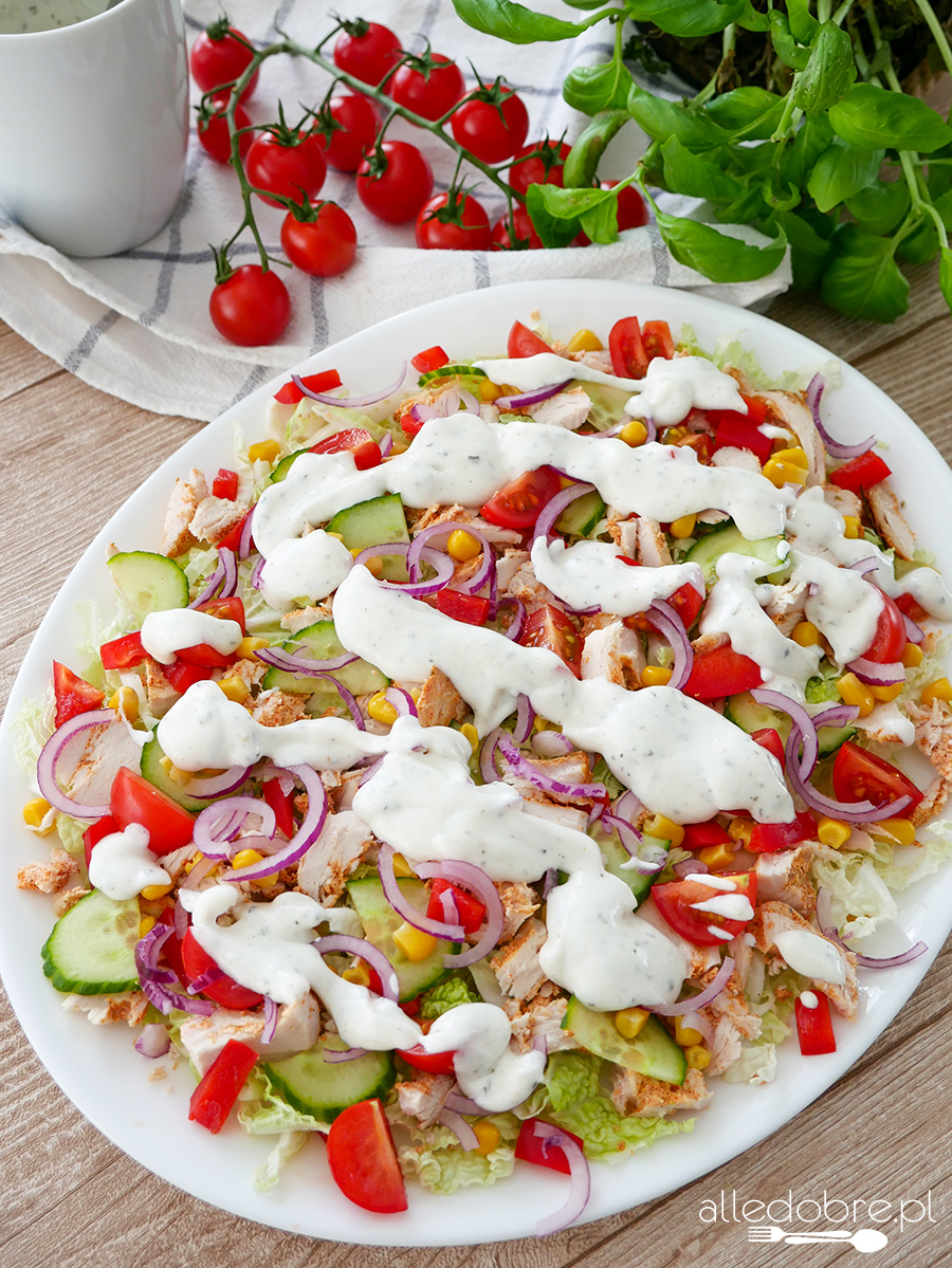 Sałatka z sosem jogurtowym oprócz walorów smakowych również pięknie prezentuje się na talerzu. Jest kolorowa, smaczna i pożywna. Jeśli organizujecie
