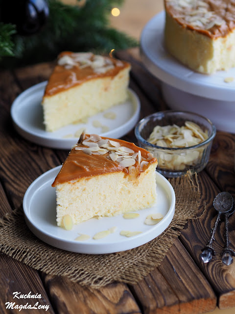 Sernik z mlekiem skondensowanym, bez spodu to prawdziwy hit! Nie spodziewałam się takiego efektu – jest puszysty, delikatny i znakomity w smaku.Składa się tylko z 4 składników plus kajmak, który znajduje się na wierzchu ciasta. Jest bardzo prosty i szybki w przygotowaniu, a największym wyzwaniem jest czekanie, aż sernik będzie