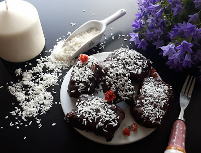Batoniki z białego sera z dodatkiem kokosu, oblane gorzką czekoladą – dzieci…