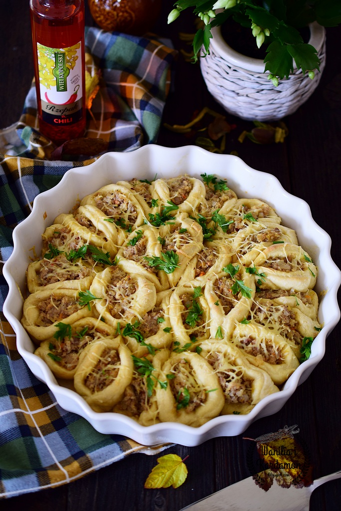 Mozaika drożdżowa z mięsem i kiszoną kapustą