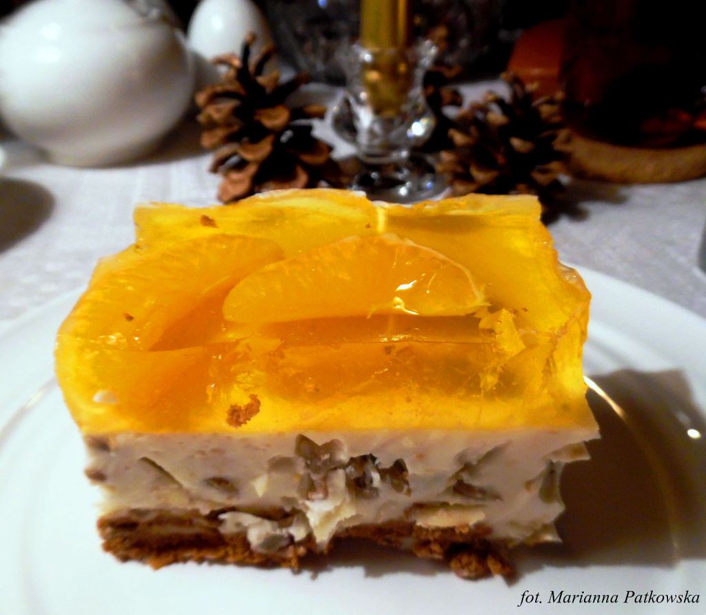 Migdałowy sernik na zimno z galaretką z mandarynkami