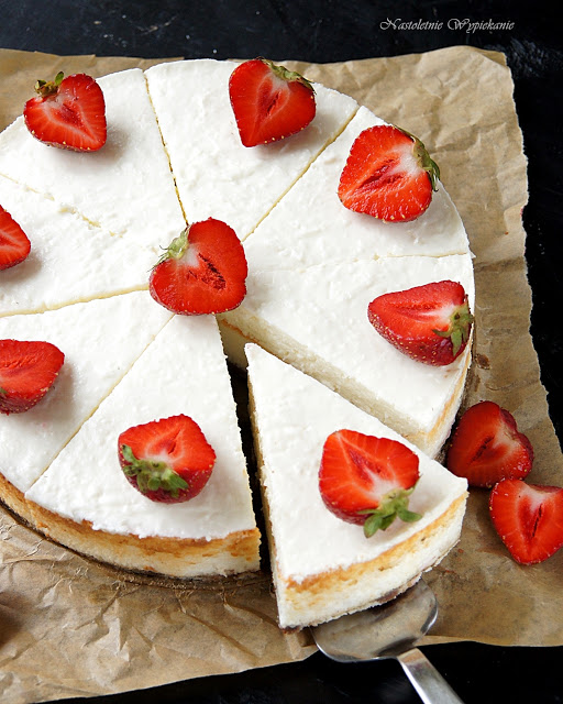 Leciutki biały sernik pieczony wyłącznie na białkach- bez żółtek. Dodatek mleczka kokosowego…