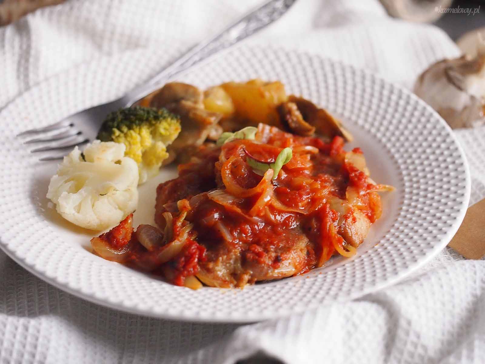 Pieczona karkówka w pomidorach / Roasted pork neck with tomatoes