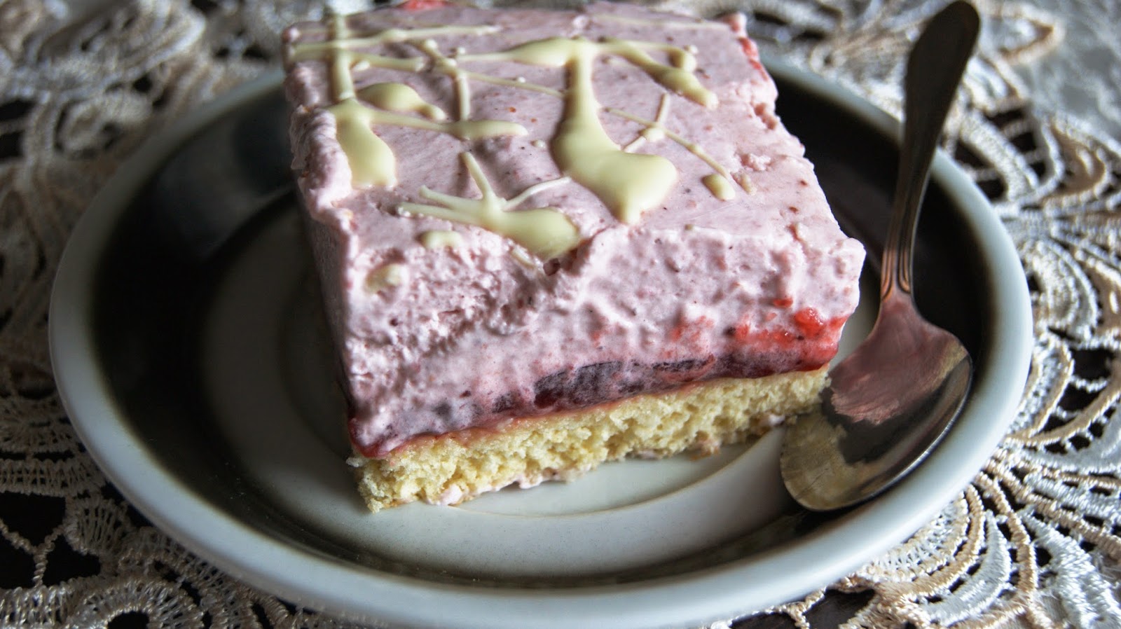 Dziś prezentuję przepyszne ciasto z musem truskawkowym wg przepisu z bloga Kwestia…