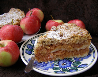 sypana szarlotka z orzechowym, chrupiącym wierzchem…