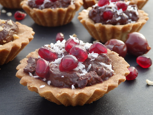 Dziś zapraszam na małe słodkości w postaci kruchych babeczek. Nadzienie to budyń czekoladowy z dodatkiem czekolady. Użyłam czekolady gorzkiej ale jak ktoś woli bardziej słodkie może użyć czekolady mlecznej. Do dekoracji wykorzystałam m.in. wiśnie, które pozostały mi po
