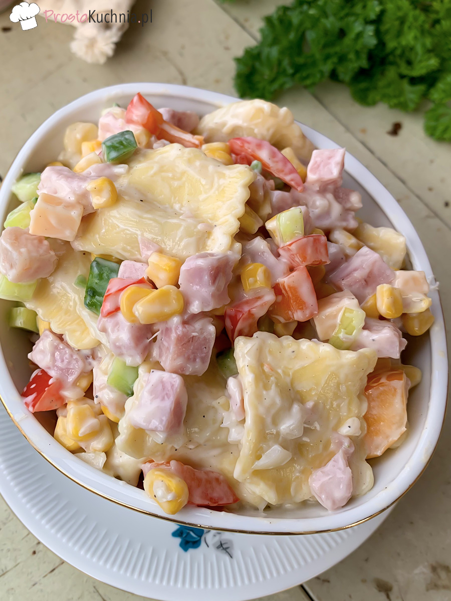 Sałatka z pierożkami ravioli smakuje naprawdę świetnie i sprawdzi się na każdą okazję. Będzie fajnym pomysłem na rodzinne spotkania, sycącym posiłkiem do pracy czy opcją na kolację.