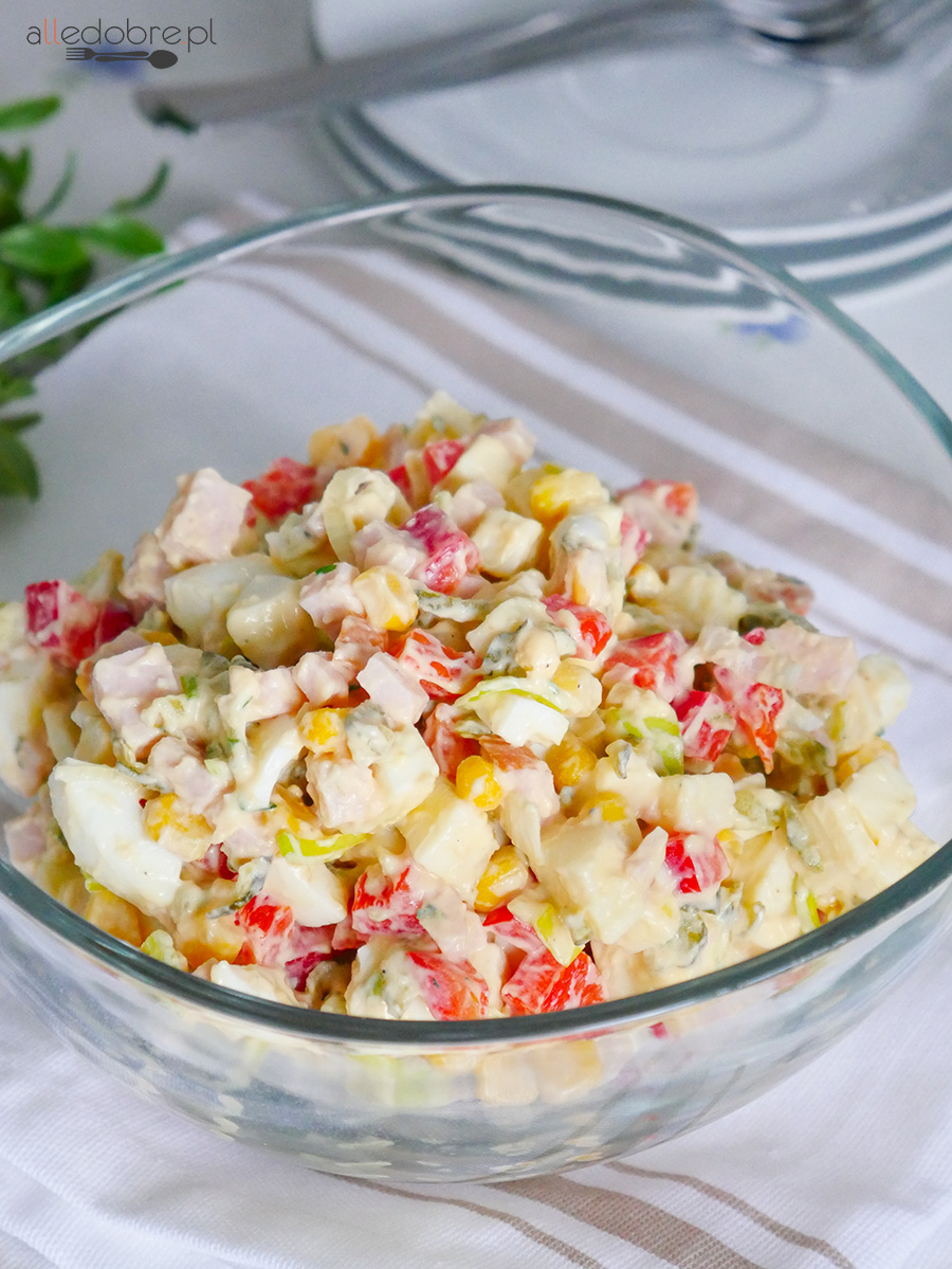 Sałatka z szynki i pora jest banalnie prosta do zrobienia, smaczna i pożywna. Składa się z prostych składników
