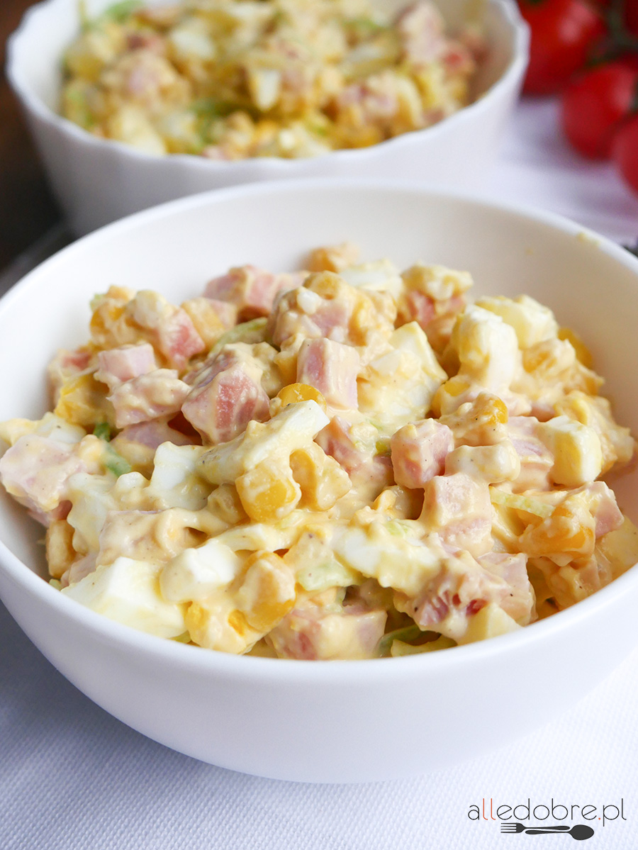 Sałatka jajeczna z szynką jest smaczna, pożywna i sycąca. Robi się ją naprawdę ekspresowo i nie wymaga wielu składników. Do jej przygotowania potrzebujesz kawałka szynki, jajek, pora i kukurydzy. Sos
