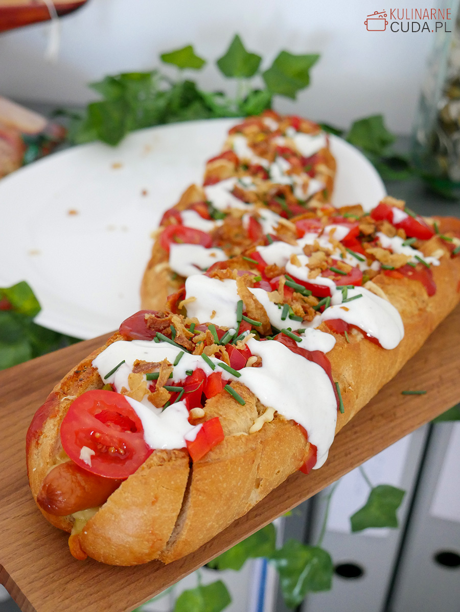 Czosndogi to świetna odmiana dla tradycyjnych hot-dogów, w których podłużna bułka została zastąpiona czosnkową bagietką.