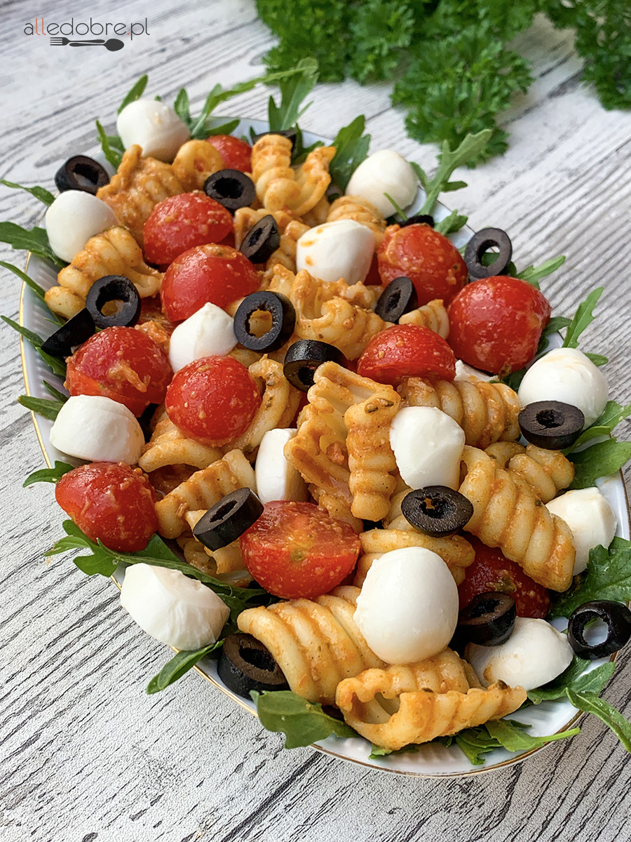 Sałatka z mozzarellą i pomidorkami cherry to jedna z moich ulubionych sałatek. Jest bardzo lekka, delikatna i ciekawa w smaku. Szykuję ją szczególnie latem, zazwyczaj jako dodatek do dań z grilla. Często również pakuję tę sałatkę w pudełeczko i zabieram ze sobą do pracy na lunch.