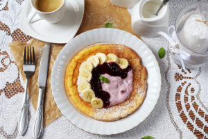 Omlet na słodko z owocami i dżemem jest świetnym pomysłem na śniadanko.…
