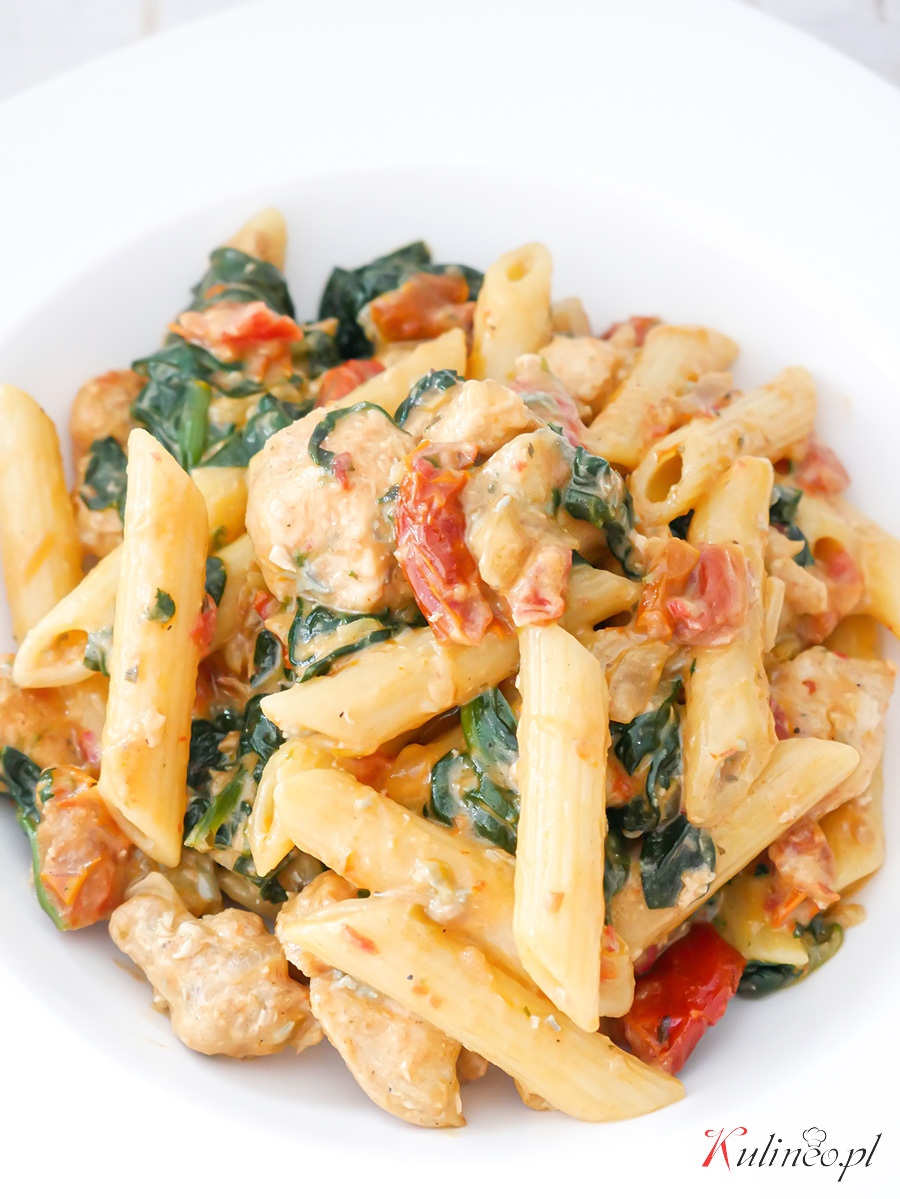 Makaron z kurczakiem i szpinakiem to pomysł na szybki i smaczny obiad dla całej rodziny. Danie niezwykle proste w przygotowaniu, smaczne i sycące. Delikatny, kremowy sos nadaje potrawie delikatności i wyrazistości. Dodatek suszonych pomidorów natomiast urozmaica smak i dodaje całości charakteru. Jeśli lubicie szybkie i sycące potrawy, przy których nie