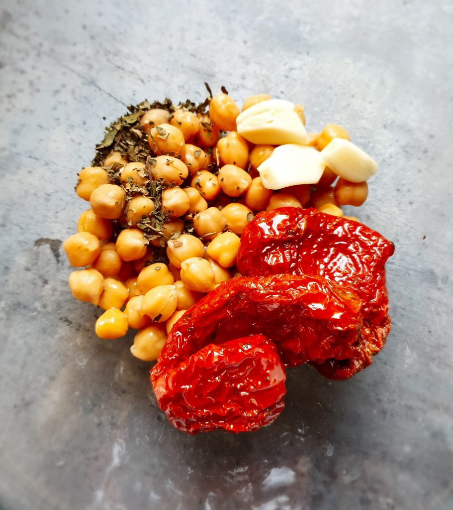 Kochani, dziś dzielę się z Wami przepisem na pastę, która skradła kubki smakowe moich podopiecznych. Taka prosta i taka pyszna pasta z ciecierzycy i suszonych pomidorów. Koniecznie wypróbujcie! Z przepisu podanego poniżej otrzymacie pastę na mniej więcej 3-4 kromki pieczywa. Jeśli chcecie więcej, to polecam podwoić listę składników. Pasta jest