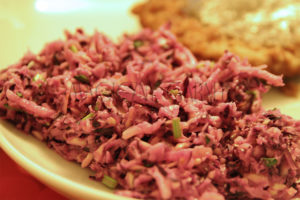 Surówka z czerwonej i białej kapusty była dodatkiem do tradycyjnych kotletów schabowych…