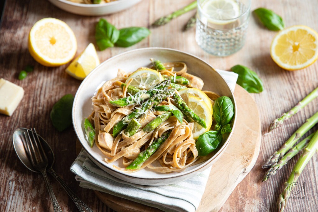 Makaron ze szparagami i kurczakiem w sosie cytrynowym