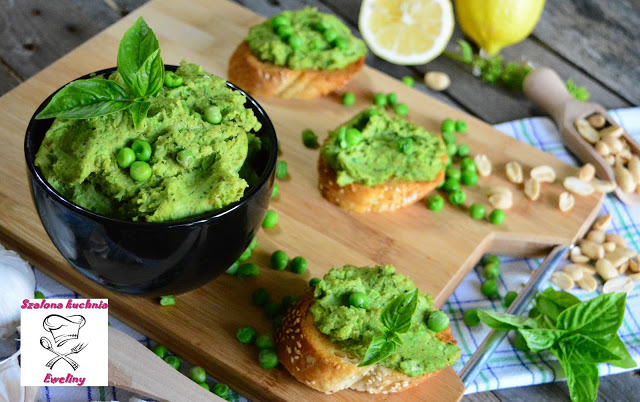 Pasta z zielonego groszku z dodatkiem orzeszków i świeżej bazylii