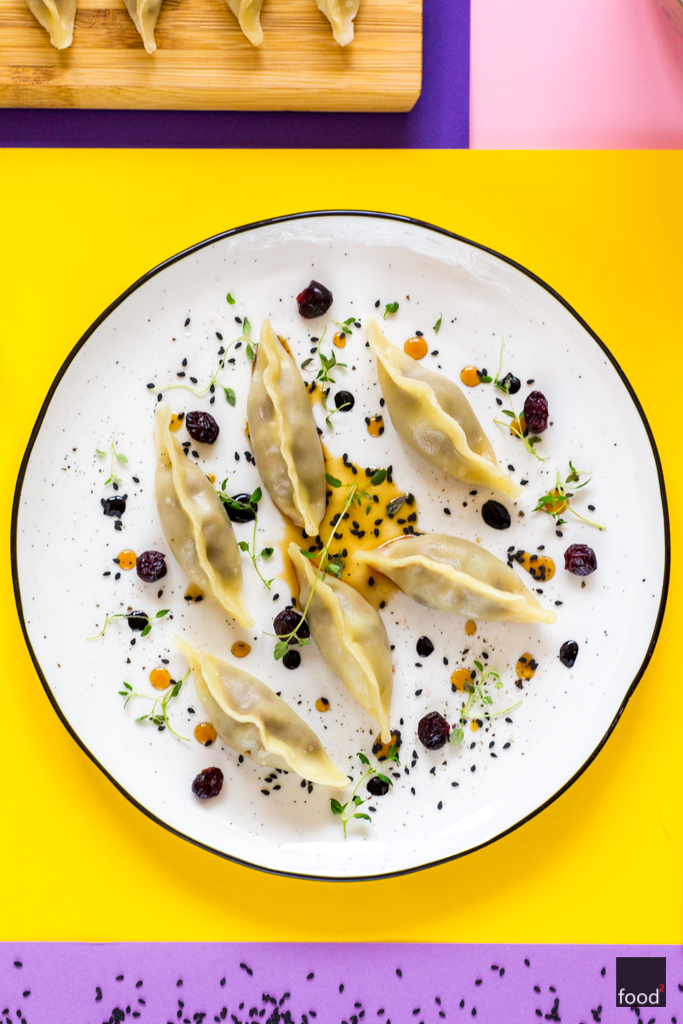 Pierogi gyoza z pieczoną kaczką i sosem z suszonych owoców