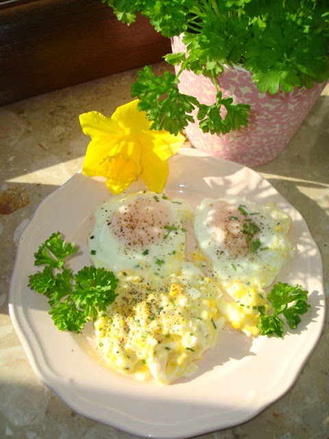 Jem jajecznicę i jajko sadzone 😀 aaa co sobie będę :)Trochę tego…