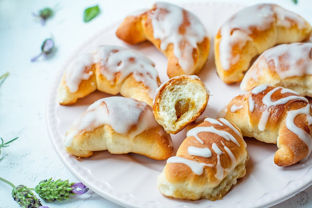 Pyszne, mięciutkie rogaliki z lekko kwaskowym dżemem rabarbarowym, idealne na deser czy…